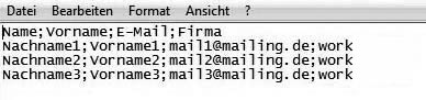 Maybe you have already collected email addresses to which you want to send a newsletter. No matter in which database these information are stored – you only need to save them in a CSV file (for example with Excel) and import them BetterNews. You can pack your CSV file as a zip to accelerate the uploading of large files. That's how it works:In the first line of the table, there should be field names – first name, surname, email address etc. An example: |