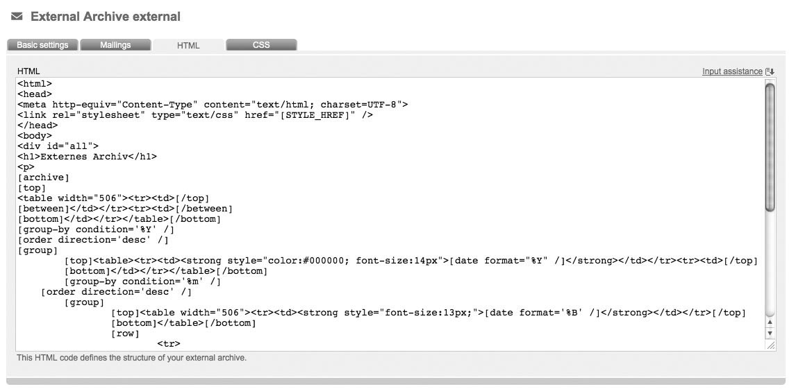 While creating your external archive, BetterNews generates an html source code in the background, which defines the structure of your external archive. If you want to edit the look of your shown archive, you have to edit the source code, which requires appropiate HTML knowledge.