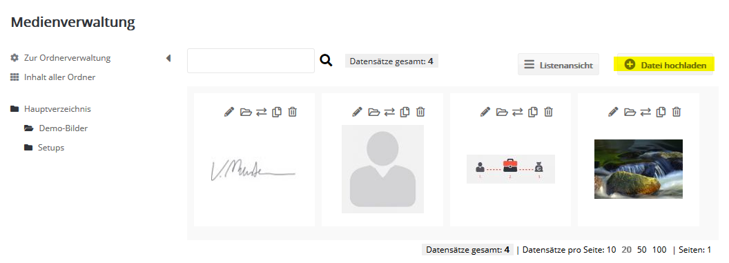 Gegenüber dem Upload im Webspace bietet die Medienverwaltung folgende Vorteile: